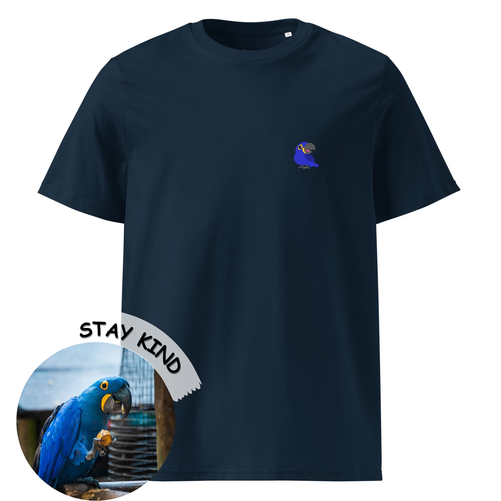 Wear the Hyacinth Macaw Kindness Tee and spread a little more care and warmth to the world wherever you go!